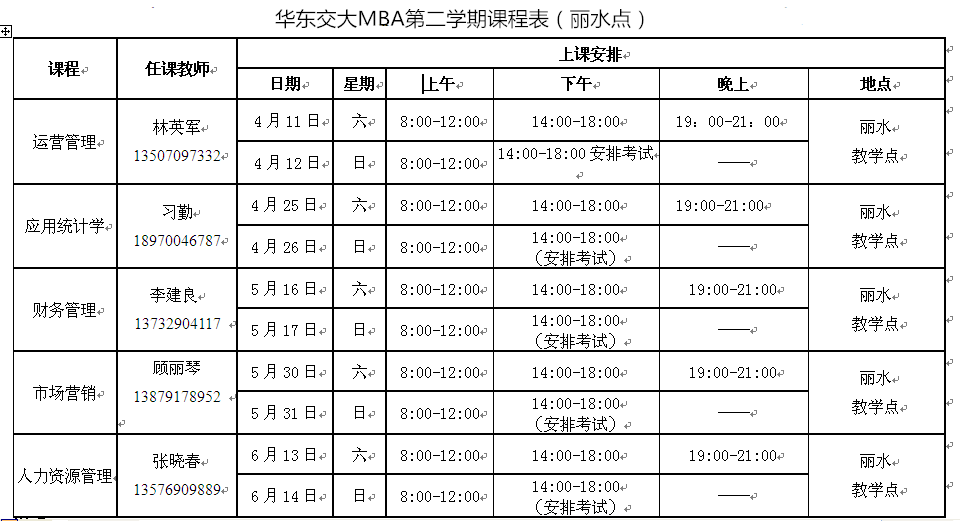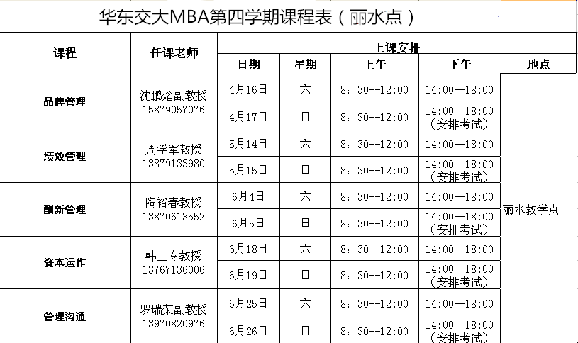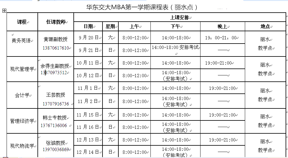 華東交通大學(xué)MBA課程安排
