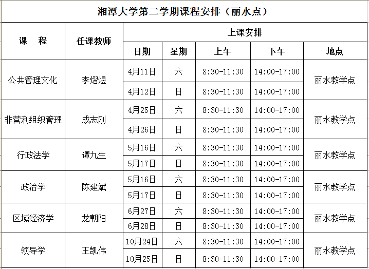 湘潭大學(xué)MPA課程安排