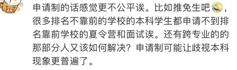 本科學校不夠好的考生,本來還可以通過努力考研獲取重新?lián)裥5臋C會,但是如果實行申請制,在背景上已經比別人落后一截。
