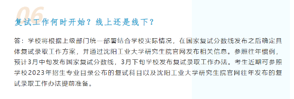 沈陽(yáng)工業(yè)大學(xué)官方公眾號(hào)發(fā)布:預(yù)計(jì)3月中旬發(fā)布國(guó)家復(fù)試分?jǐn)?shù)線,3月下旬學(xué)校發(fā)布復(fù)試錄取工作辦法。