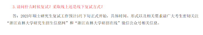 浙江農(nóng)林大學(xué)官方發(fā)布:2023年碩士研究生復(fù)試工作預(yù)計(jì)3月下旬正式開始。