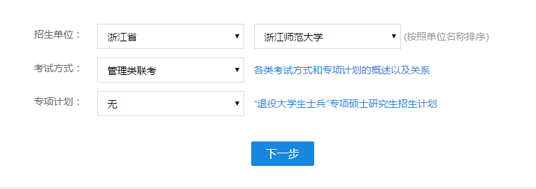 選擇了其中某個報考單位后,頁面長這樣(以浙江師范大學為例):