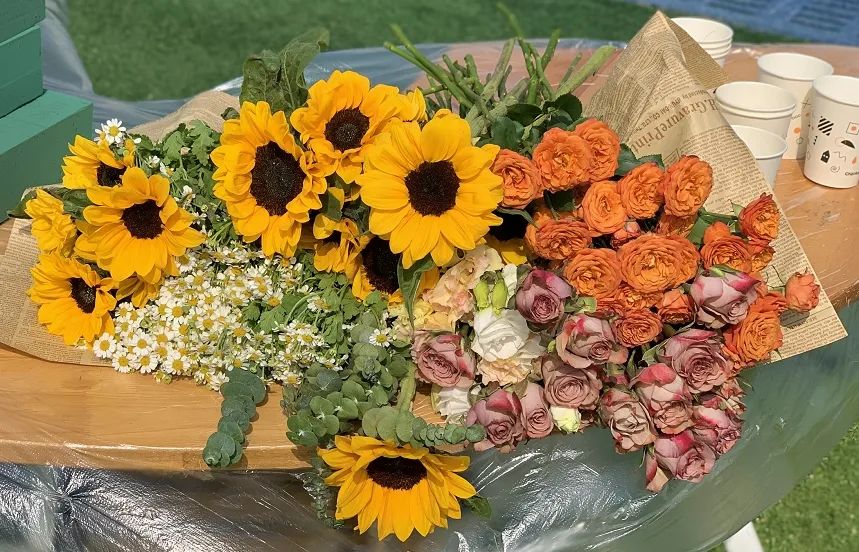 在工作人員的指導(dǎo)下,參與活動(dòng)的同學(xué)們以玫瑰花、洋甘菊、向日葵等春日花卉為素材,學(xué)習(xí)配色、修剪與造型技巧,創(chuàng)作出獨(dú)具匠心的插花作品。一束束錯(cuò)落有致的花藝作品,是春日的饋贈(zèng),亦是審美能力的生動(dòng)實(shí)踐。