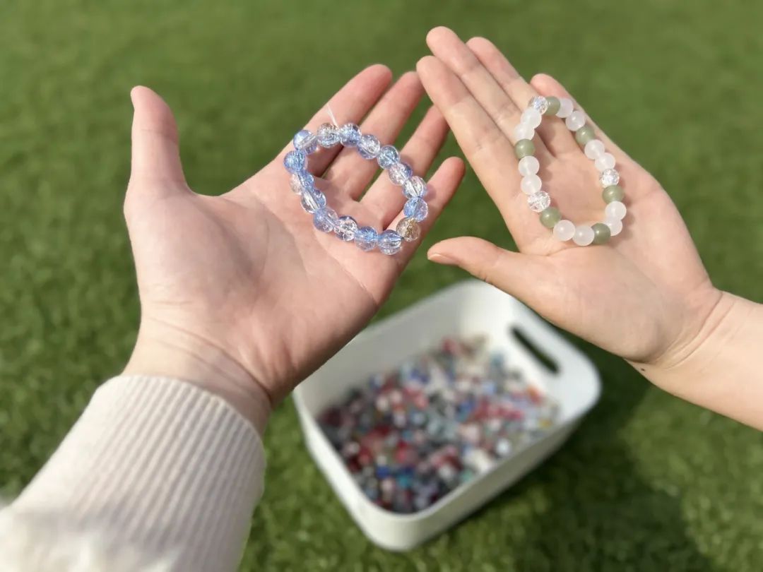 串珠手作區(qū)也同樣吸引了眾多同學(xué)駐足,晶瑩剔透的琉璃珠與編織線在指尖穿梭,化作手鏈、掛飾等精美工藝品。活動(dòng)將傳統(tǒng)手工藝與現(xiàn)代設(shè)計(jì)結(jié)合,讓參與的同學(xué)們?cè)趯W?chuàng)作中體會(huì)匠心精神的傳承,更在指尖流淌的創(chuàng)意中找到了心靈的寧?kù)o。